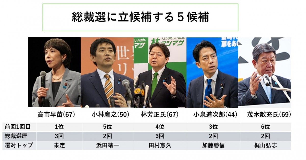 総裁選リポート②:きょう告示 【小泉氏=60% 高市氏=30% 林氏=...